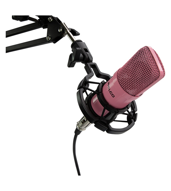 KIT STUDIO MICROPH C/SOPORTE/POP/ STAND/USB SOUND CARD ROSADO